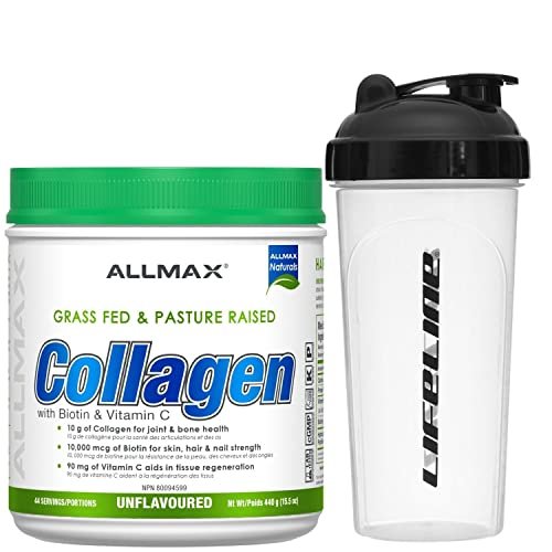 Original price was: CAD13.32.CAD11.99Current price is: CAD11.99.Allmax Collagen (with Biotin + Vitamin C) – Grass Fed & Pasture Raised with Shaker Bottle – 44 Servings