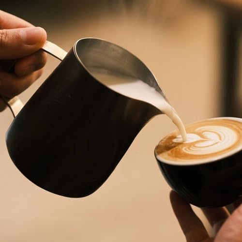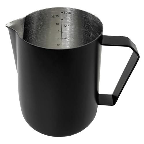 600ml Milk Frothing Pitcher Stainless Steel Milk Pitcher 20oz Espresso Accessories of Coffee Milk Frother Cup. Measurement Scale. Ideal for Coffee Arts.Espresso and Cappuccino – Black