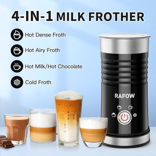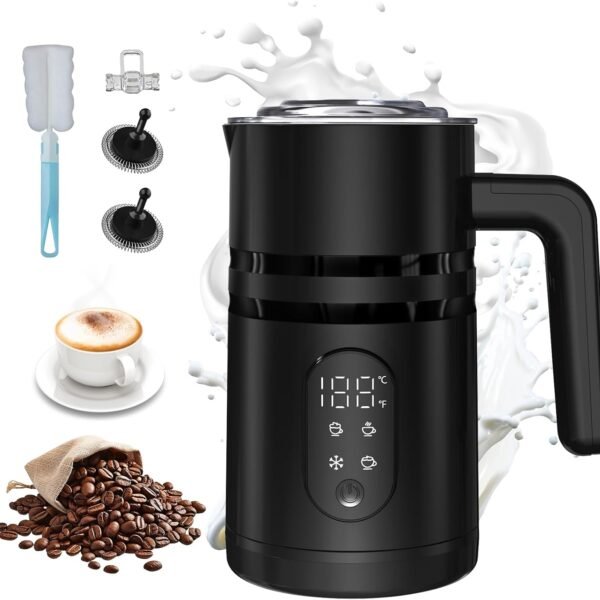 4 in 1 Milk Frother: Electric Milk Foamer with Cold & Hot Froth for Latte Cappuccino – Automatic Coffee Foam Maker 350 ml/10 oz Instant Milk Chocolate Steamer Heater