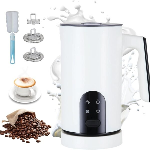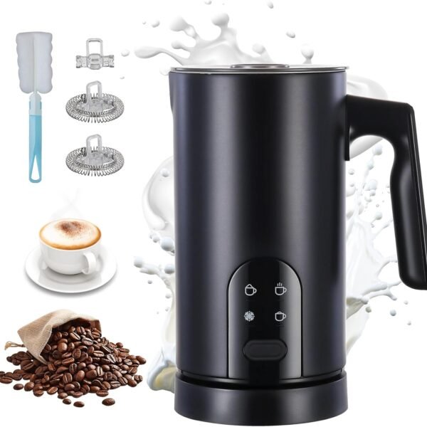 4-in-1 Milk Frother Electric Steamer – Hot and Cold Coffee Foam Froth Machine. 300ml Automatic Milk Warmer Foamer for Latte. Cappuccinos. Macchiato. Chocolate