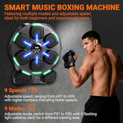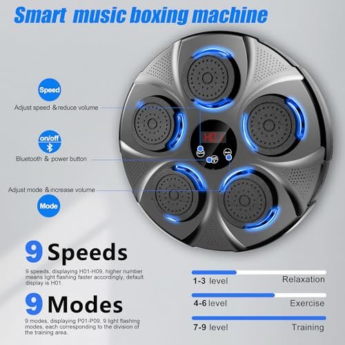 SPIEEK Music Boxing Machine with 9 Speeds & Modes for Adults. Boxing Machine Wall Mounted Music with Gloves. Boxing Equipment for Home and Gym. Training Machine with Electronic
