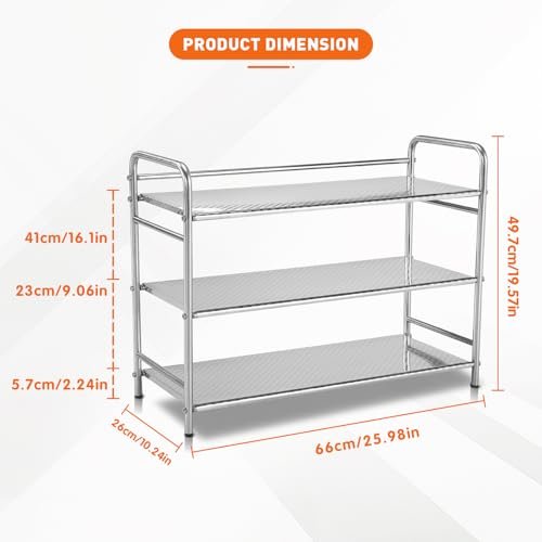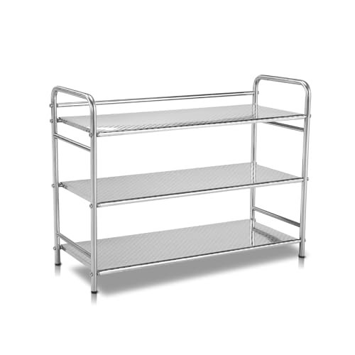 Original price was: CAD5.66.CAD5.10Current price is: CAD5.10.3-Tier Stainless Steel Shoe Rack. Heavy Duty Metal Shoe Organizer for Closet & Entryway. Stackable Shoe Shelf with Space Saving Design