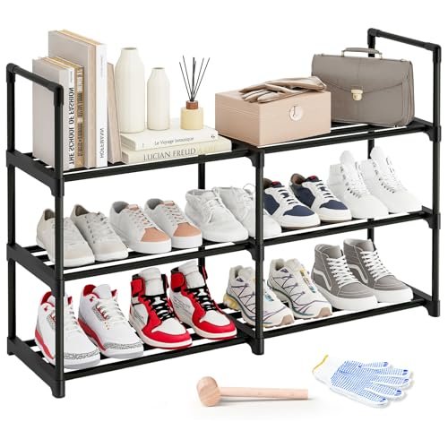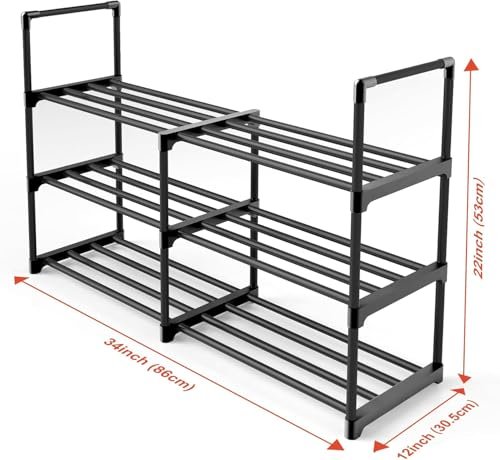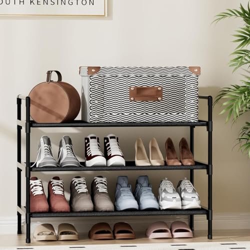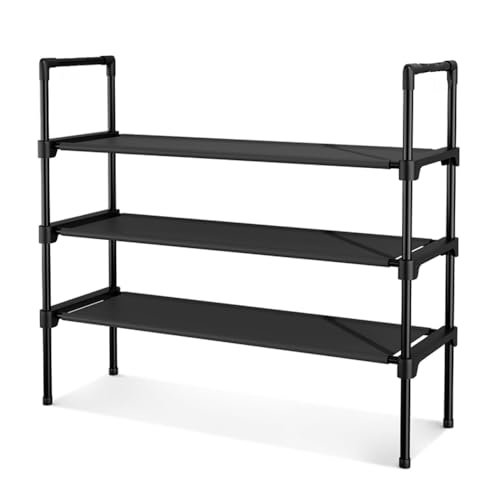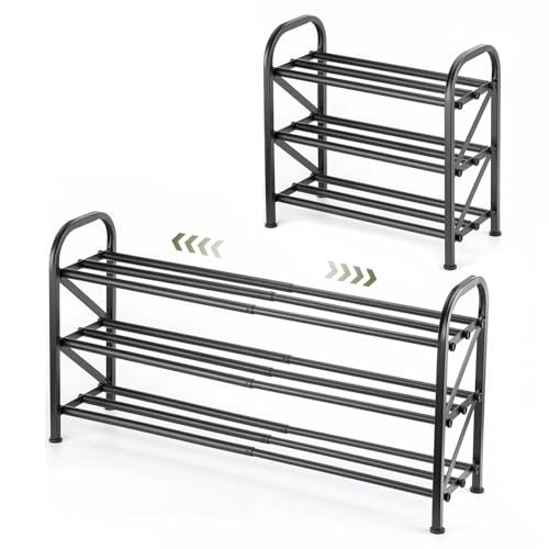 3-Tier Shoe Rack for Closet. 16-33 Expandable ShoeRack. Adjustable for Entryway Closet Doorway SturdyMetal. Black