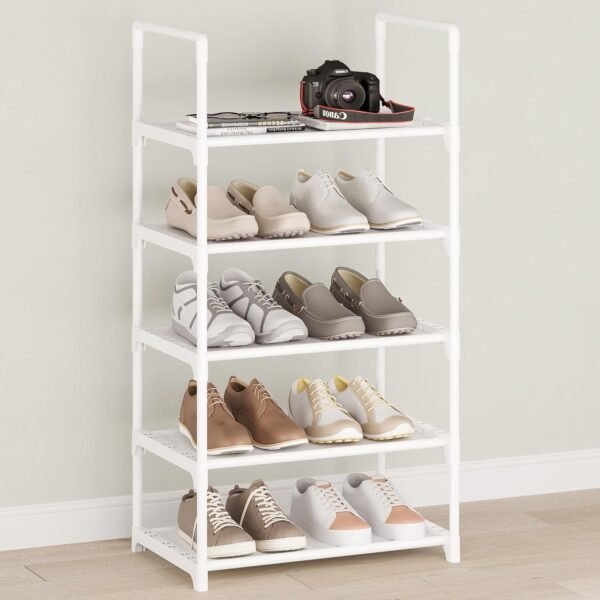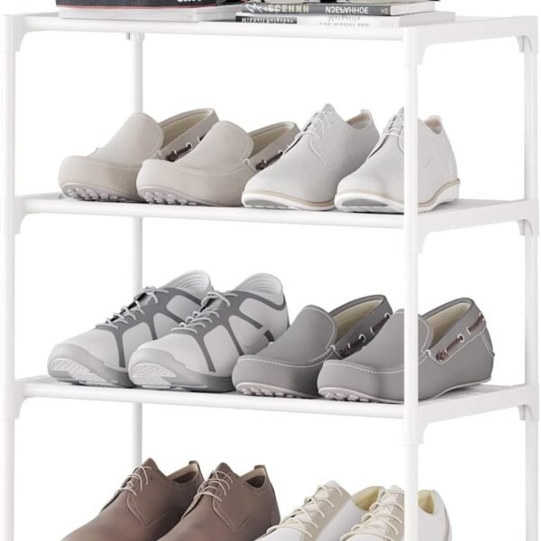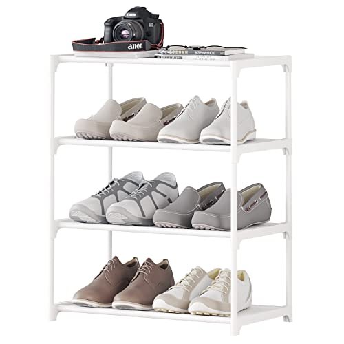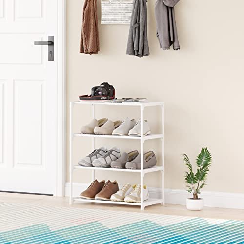 4-Tier Small Shoe Rack .Stackable Shoe Shelf Storage Organizer for Entryway Hallway Closet Bathroom Living Room (1-White)