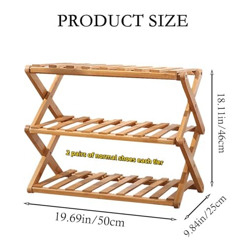 3-Tier Shoe Rack for Entryway. Bamboo Wood Shoe Rack. Free Standing Shoe Racks for Indoor & Outdoor. Stackable Shoe Organizer for Closet