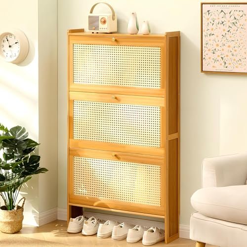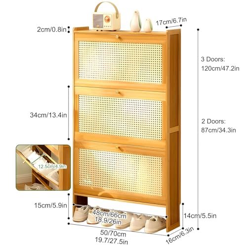 2/3 Tier Ultra Slim Shoe Cabinet. Wood Free Standing Shoe Cabinet with Flip Doors. Modern Shoe Storage Cabinet. Narrow Shoe Rack for Entryway. Living Room