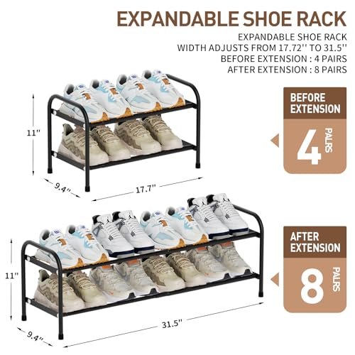 Original price was: CAD34.99.CAD10.50Current price is: CAD10.50.2-Tier Expandable Shoe Rack. Adjustable Shoe Organizer & Storage for Closet. 17.7-31.5 Inch Heavy Duty Metal Shoe Shelf. Space Saving Rack for Entryway. Hallway. Front Door Entrance. Garage