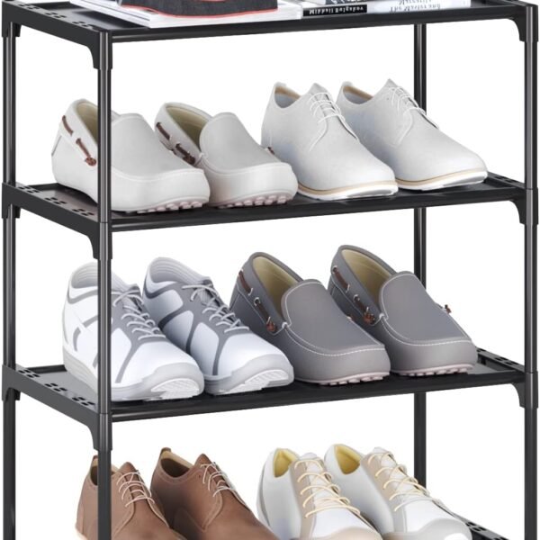 4 Tier Shoe Rack | Shoe Organizer Storage | Space Saver Standing Shoe Shelf Storage Organizer. Large Capacity Organizer Rack. Shoe Organizer for Indoor