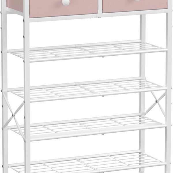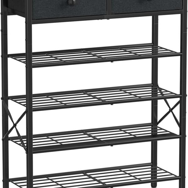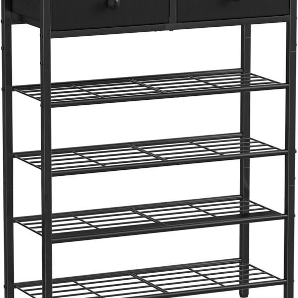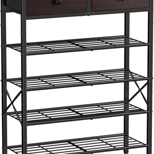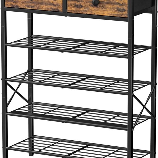 5 Tier Entryway Shoe Rack. Shoe Storage Organizer with 2 Drawers. Metal Shoe Shelf for 16-20 Pairs with Wooden Top for Closet. Rustic Brown